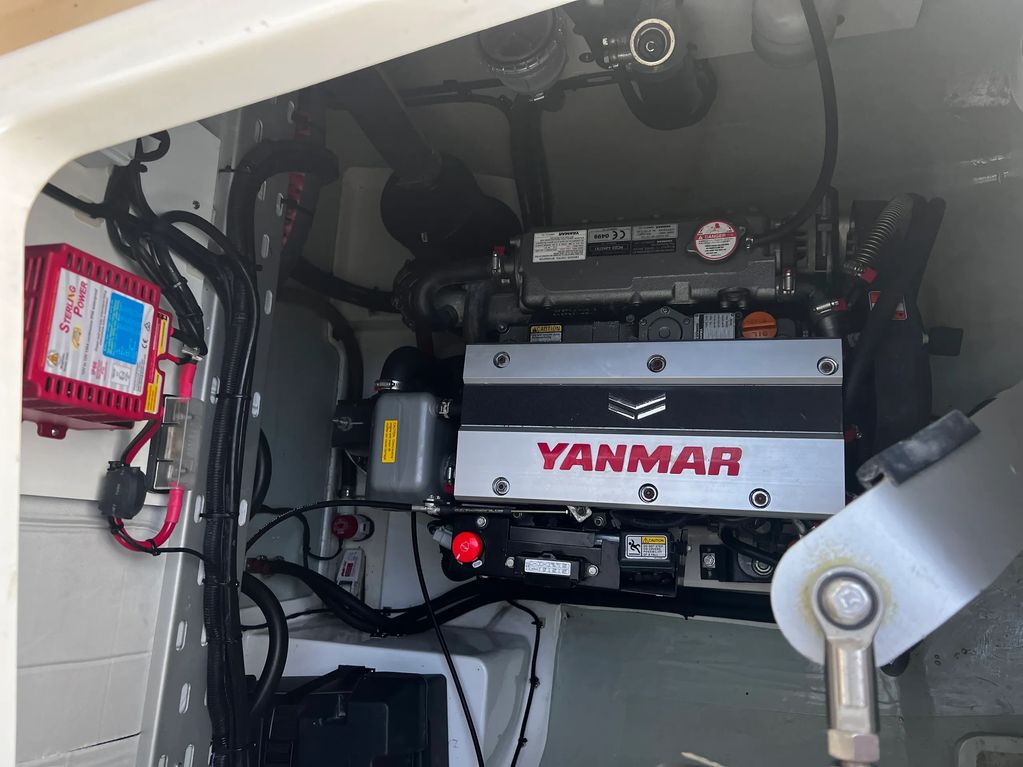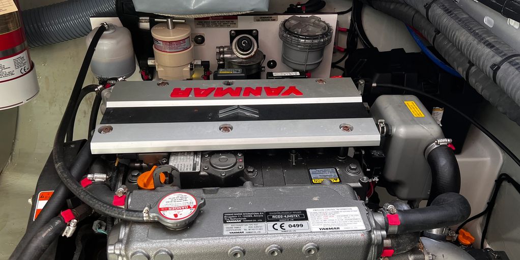 Starboard Yanmar 4JH5 engine. The red device on the left is the ......